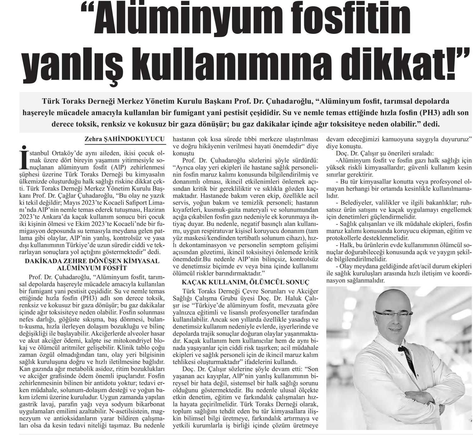 Basında Türk Toraks Derneği Çevre Sorunları ve Akciğer Sağlığı Çalışma Grubu "Alüminyum Fosfit Zehirlenmesi" Basın Bildirisi