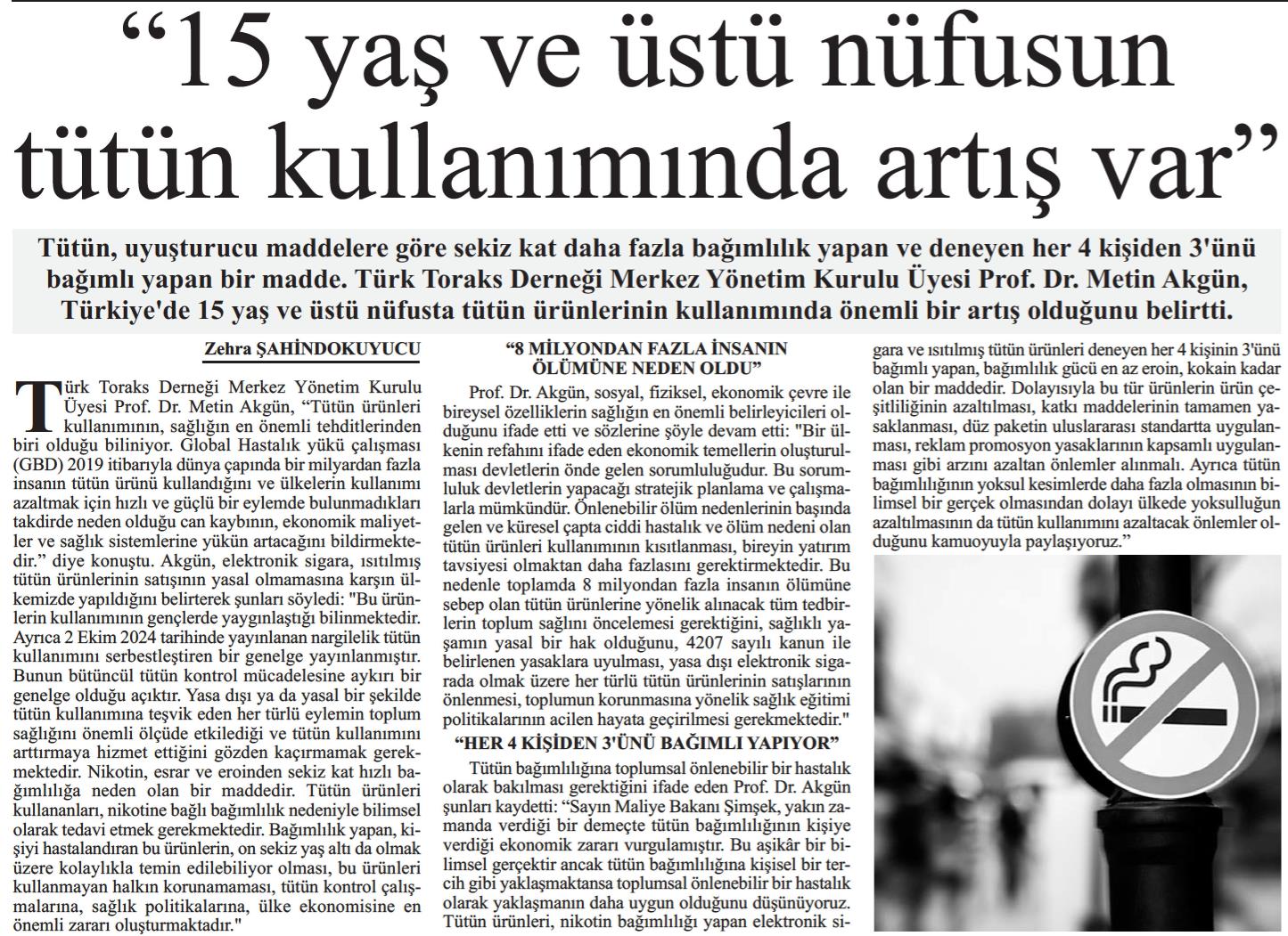 Basında Türk Toraks Derneği Tütün Kontrolü Çalışma Grubu "Tütün Bağımlılığı Kişisel Bir Tercih Değildir" Basın Bildirisi