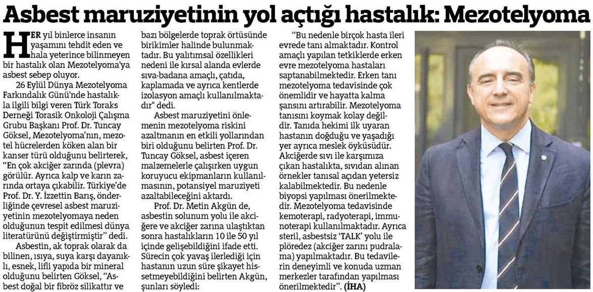 Basında Türk Toraks Derneği "26 Eylül Mezotelyoma Farkındalık Günü"