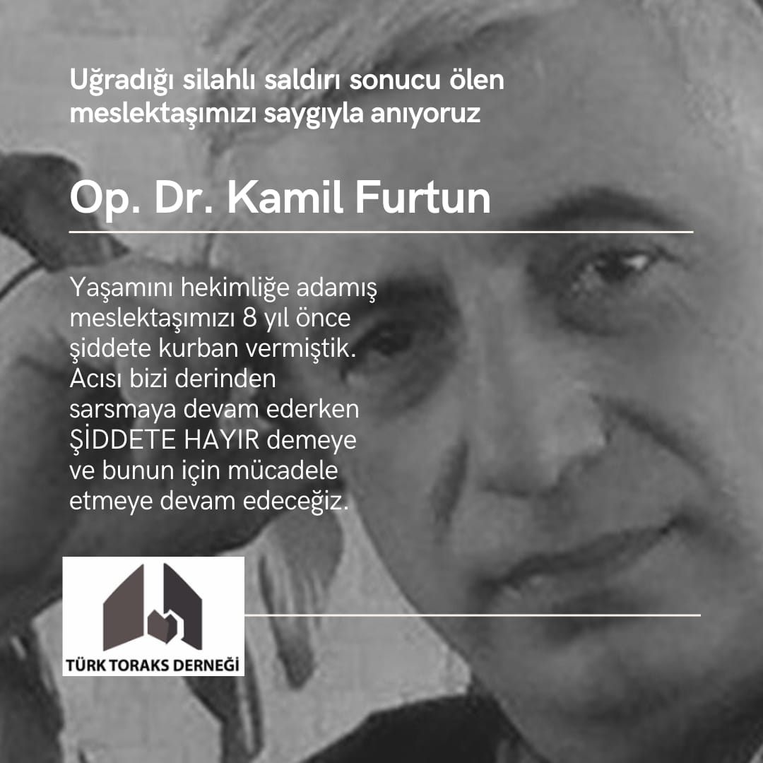 Yaşamını hekimliğe adamış meslektaşımız Op. Dr. Kamil Furtun'u 8 yıl önce şiddete kurban vermiştik. Acısı bizi derinden sarsmaya devam ederken ŞİDDETE HAYIR demeye ve bunun için mücadele etmeye devam edeceğiz.