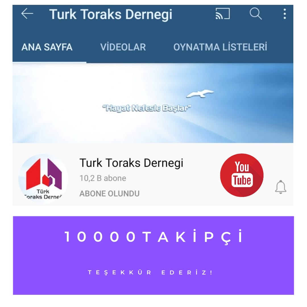 YouTube sayfamızın takipçi sayısı 10,000 kişiyi geçmiştir: https://youtube.com/user/TurkToraksDernegi