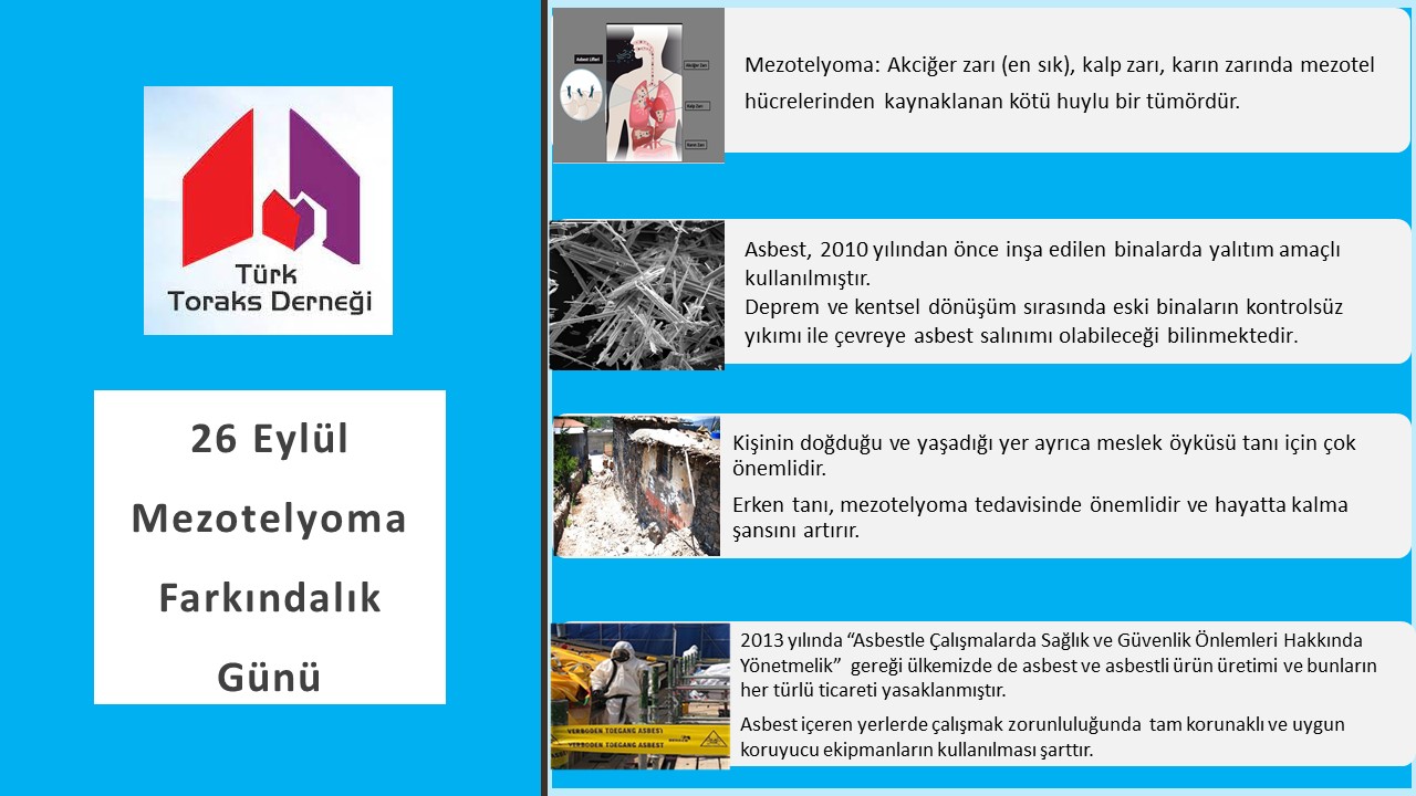 Türk Toraks Derneği Torasik Onkoloji Çalışma Grubu "26 Eylül Mezotelyoma Farkındalık Günü" Basın Bildirisi