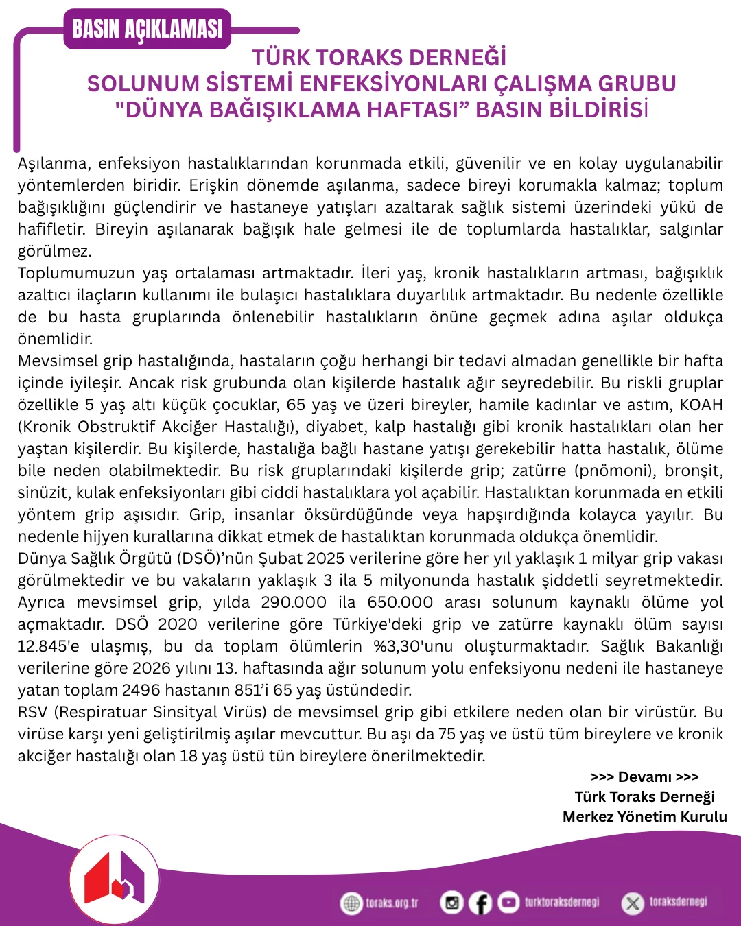 Dünya Bağışıklama Haftası Bildirisi