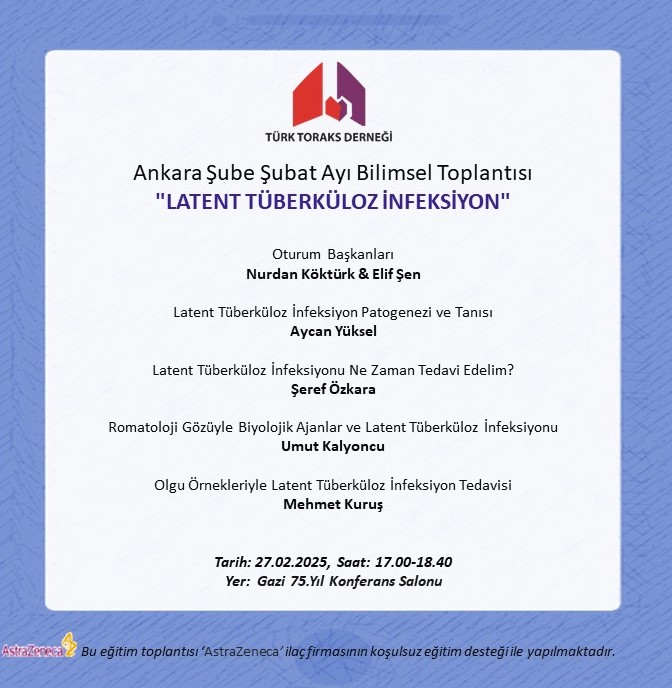 Türk Toraks Derneği Ankara Şubesi Şubat Ayı Bilimsel Toplantı Duyurumuz: "Latent Tüberküloz İnfeksiyon"