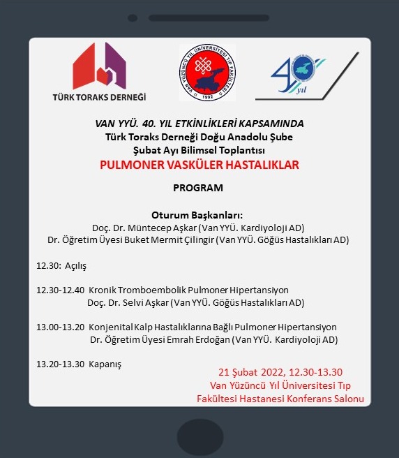 Türk Toraks Derneği Doğu Anadolu Şubesi Şubat Ayı Bilimsel Toplantısı Duyurumuz: "Pulmoner Vasküler Hastalıklar"