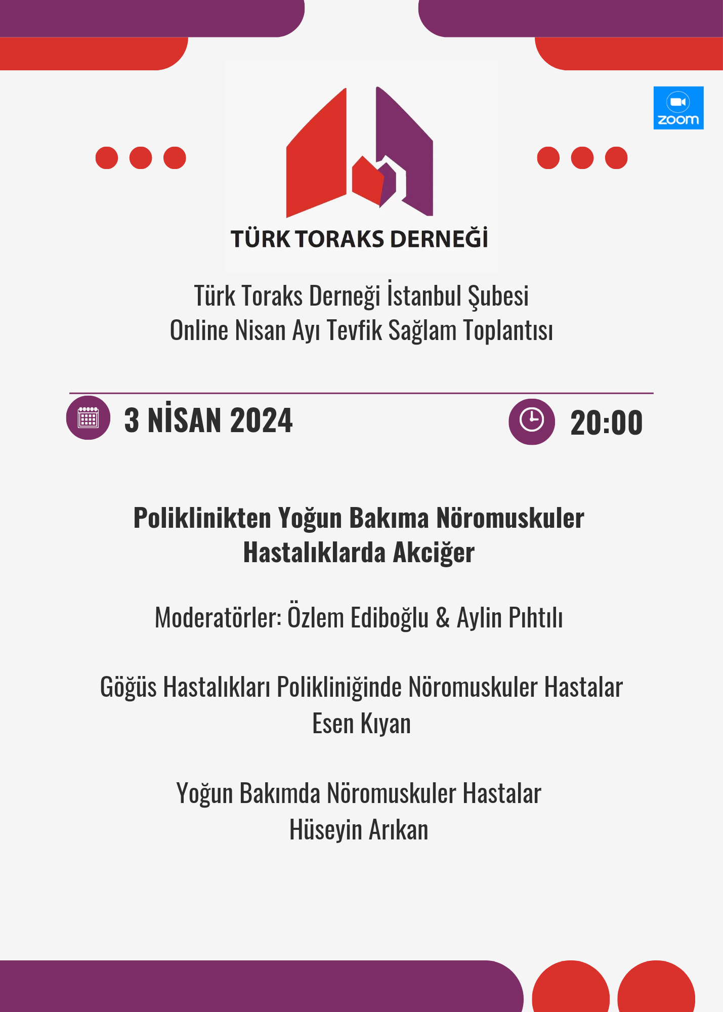 Türk Toraks Derneği İstanbul Şubesi Nisan Ayı Webinar Duyurumuz: "Poliklinikten Yoğun Bakıma Nöromuskuler Hastalıklarda Akciğer"