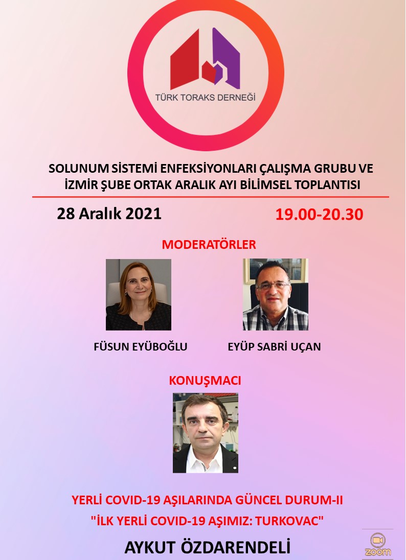 Türk Toraks Derneği Solunum Sistemi Enfeksiyonları Çalışma Grubu ve İzmir Şube Ortak Aralık Ayı Webinar Duyurumuz: "Yerli COVID-19 Aşılarında Güncel Durum-II “İlk Yerli COVID-19 Aşımız: TURKOVAC”