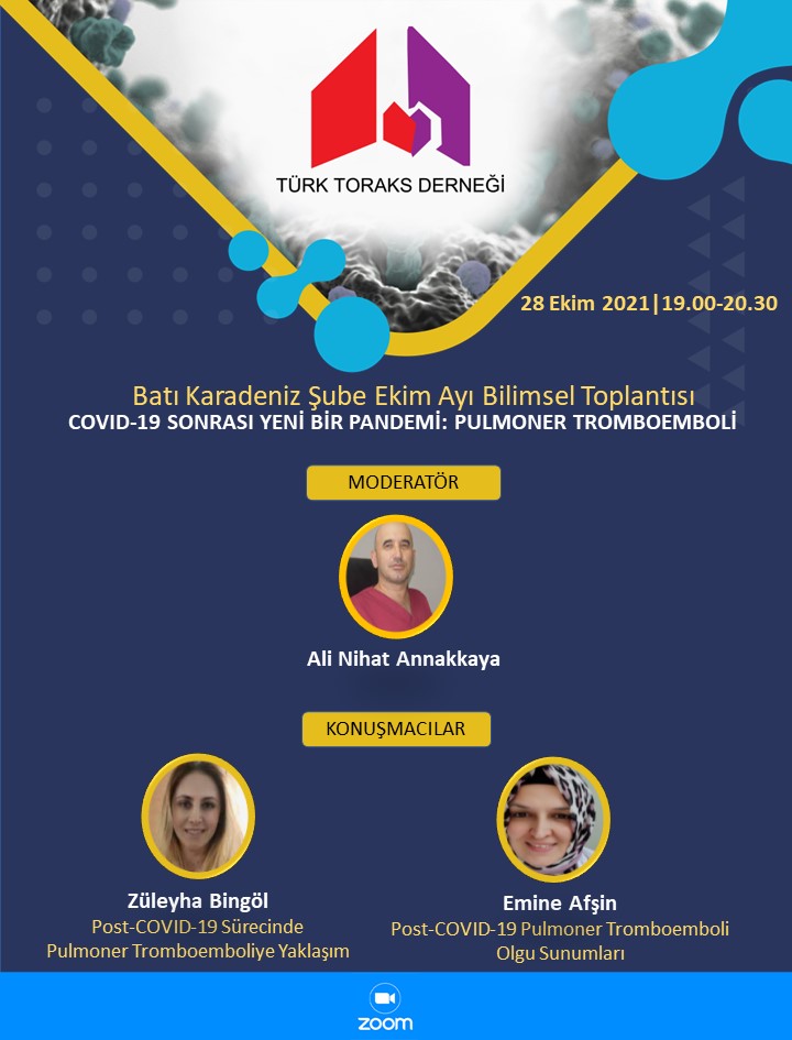 Türk Toraks Derneği Batı Karadeniz Şube Ekim Ayı Webinar Duyurumuz: "COVID-19 Sonrası Yeni Bir Pandemi: Pulmoner Tromboemboli"