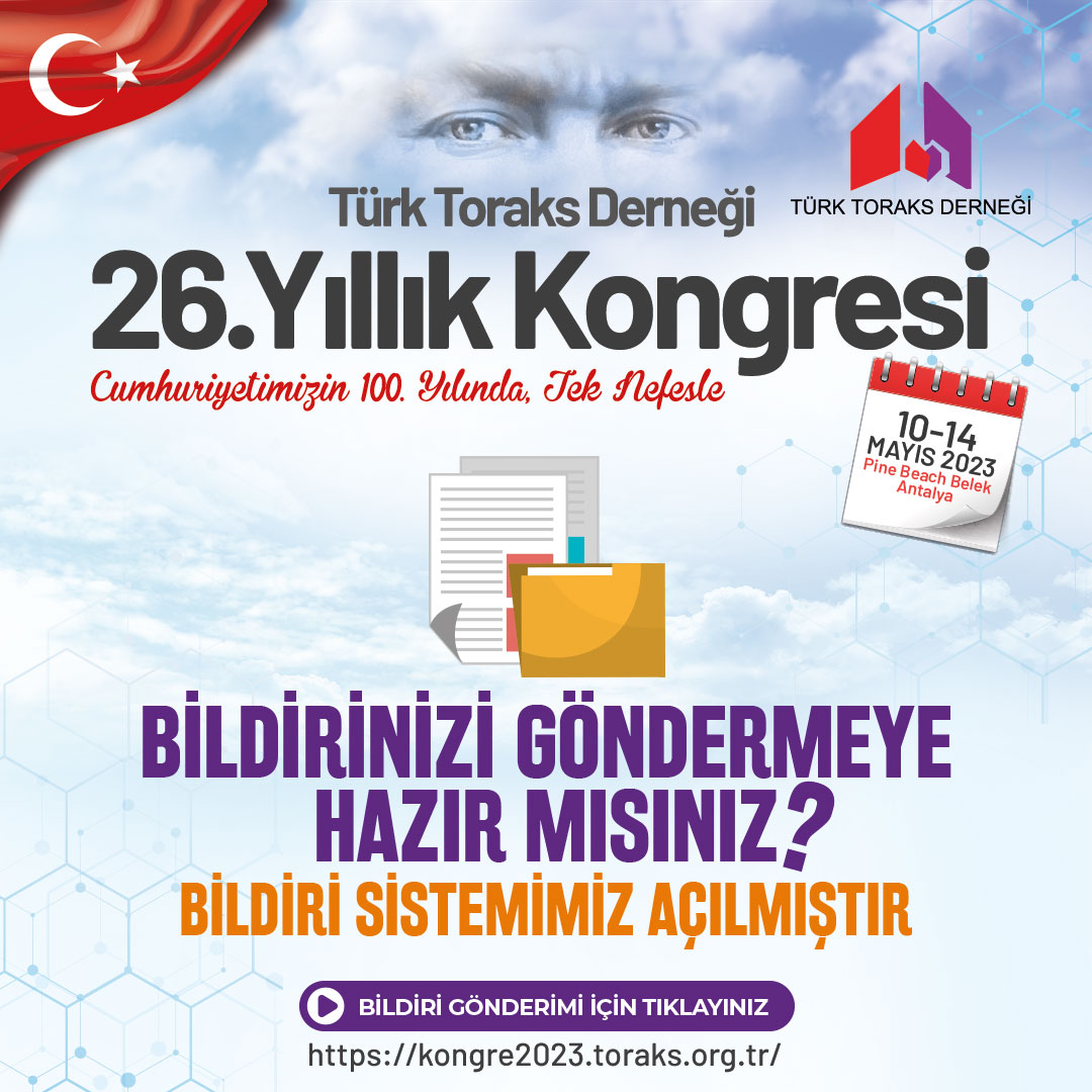 Türk Toraks Derneği 26. Yıllık Kongresi BİLDİRİ SİSTEMİMİZ AÇILMIŞTIR.