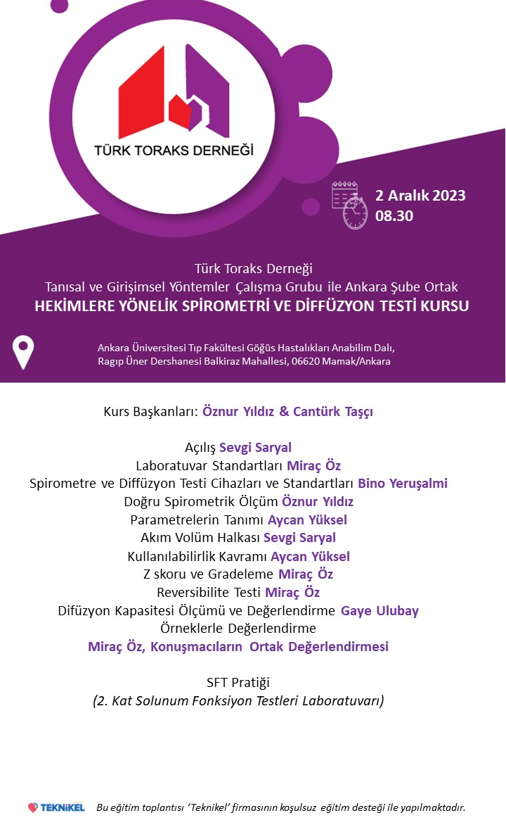 Türk Toraks Derneği (TTD) Tanısal ve Girişimsel Yöntemler Çalışma Grubu ile Ankara Şubesi Ortak "Hekimlere Yönelik Spirometri ve Diffüzyon Testi Kursu" Katılımcı Listesi Açıklandı