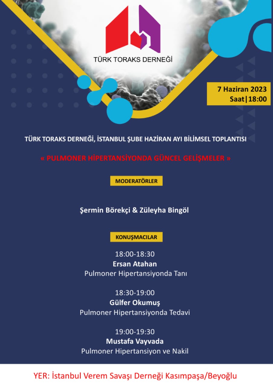 Türk Toraks Derneği, İstanbul Şubesi Haziran Ayı Bilimsel Toplantısı Duyurumuz "Pulmoner Hipertansiyonda Güncel Gelişmeler"