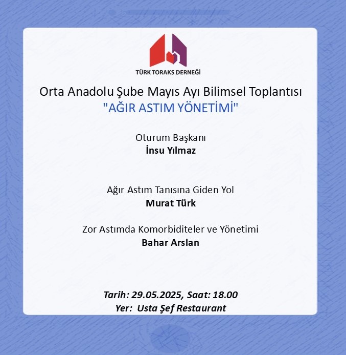 Türk Toraks Derneği Orta Anadolu Şube Mayıs Ayı Bilimsel Toplantı Duyurumuz: "Ağır Astım Yönetimi"