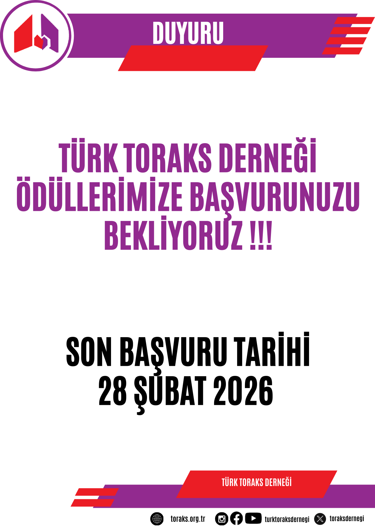 Ödüllerimiz, 8-12 Nisan 2026 tarihleri arasında Susesi Luxury Resort Otel, Antalya’da gerçekleştirilecek olan Türk Toraks Derneği 29. Yıllık Kongremizde sahiplerine ulaşacaktır.
