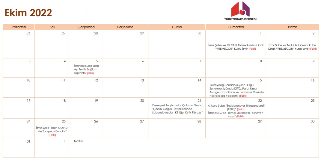 Türk Toraks Derneği Ekim 2022 Etkinlik Takvimi