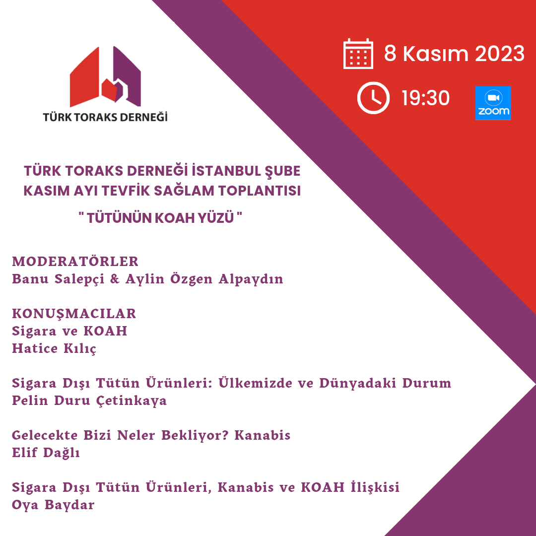 Türk Toraks Derneği İstanbul Şubesi Kasım ayı webinarı 8 Kasım 2023 tarihinde, 19.30-21.30 saatleri arasında gerçekleşecektir.
