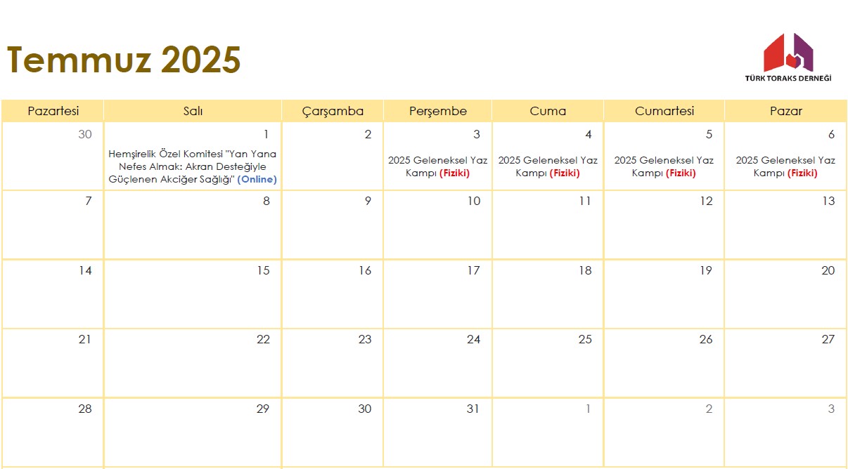 Türk Toraks Derneği Temmuz 2025 Etkinlik Takvimi