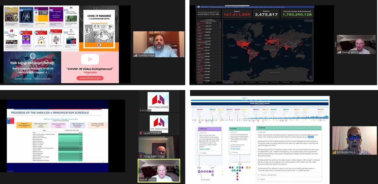 Dr. Eyüp Sabri Uçan moderatörlüğünde; “Neler Yaşadık?” Dr. Osman Elbek, “Aşılar: Olmalı Mı, Hangisi, Neden, Neyi Değiştirecekler? Dr. Murat Akova, “Süreç Farklı Yönetilebilir Miydi? Farklı Bir Süreç Olası Mı?” Dr. Kayıhan Pala tarafından tarafından aktarıldı.