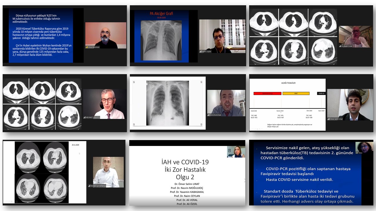 Dr. Ayşın Şakar Coşkun ve Dr. Ali Kadri Çırak moderatörlüğünde; “İki Zor Enfeksiyon; Tüberküloz ve COVID-19 Birlikteliği” Dr. Onur Karaman, “İki Ağır Dispne Nedeni; KOAH ve COVID-19 Birlikteliği” Dr. Deniz Kızılırmak ve “İki Fibrozis Yolculuğu; İAH ve COVID-19 Birlikteliği” Dr. Ömer Selim Unat tarafından aktarıldı.