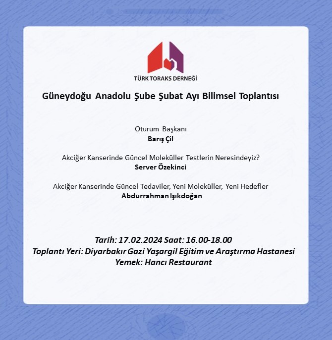 Türk Toraks Derneği Güneydoğu Anadolu Şube Şubat Ayı Bilimsel Toplantısı Duyurumuz
