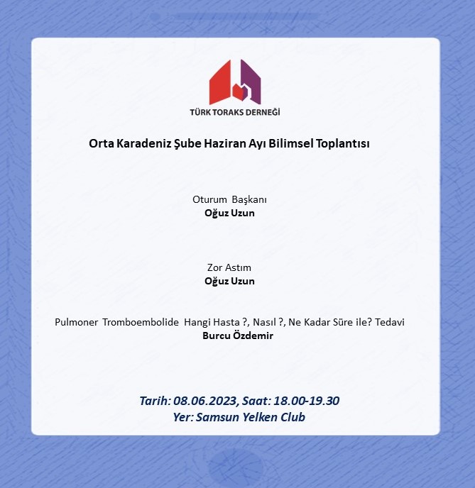 Türk Toraks Derneği Orta Karadeniz Şubesi Haziran Ayı Bilimsel Toplantısı Duyurumuz
