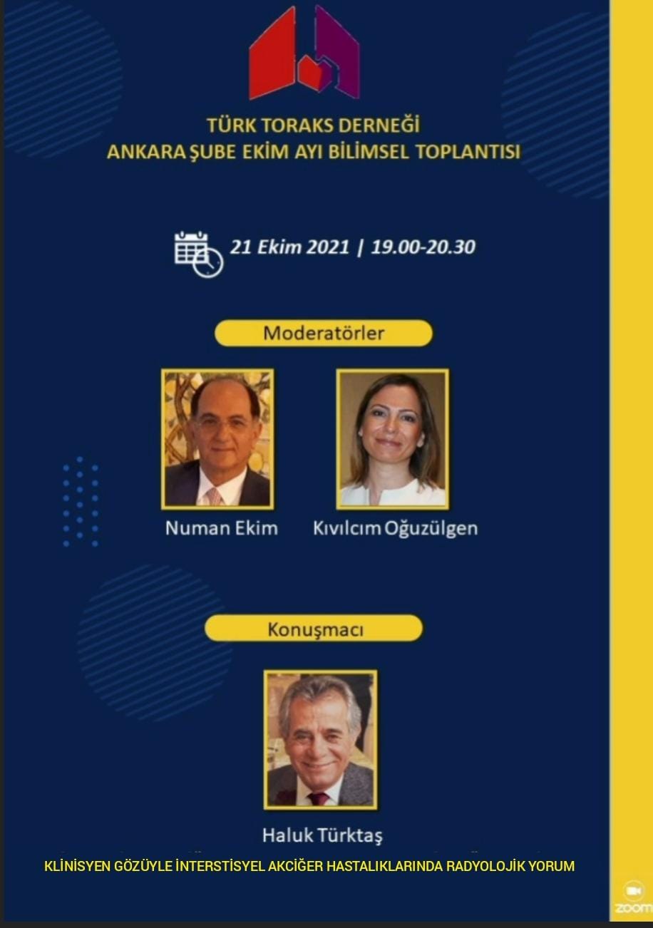 Türk Toraks Derneği Ankara Şubesi Ekim ayı webinarı 21 Ekim 2021 Perşembe günü, 19.00-20.30 saatleri arasında gerçekleştirilecektir.
