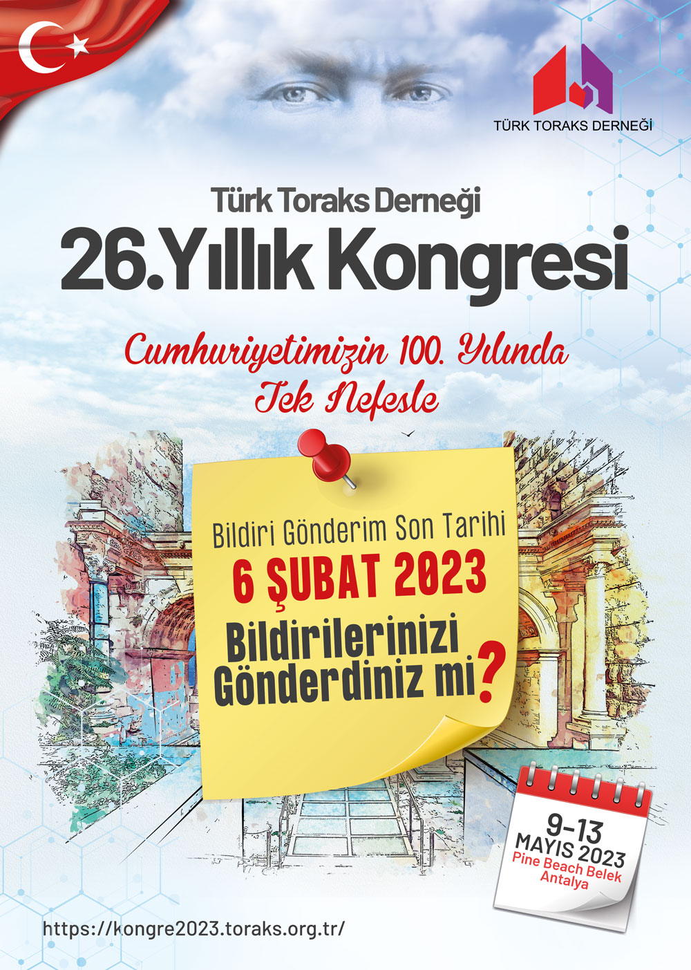 Türk Toraks Derneği 26. Yıllık Kongremize Bildirilerinizi Gönderdiniz Mi? Bildiri Son Gönderim Tarihi 6 Şubat!!!