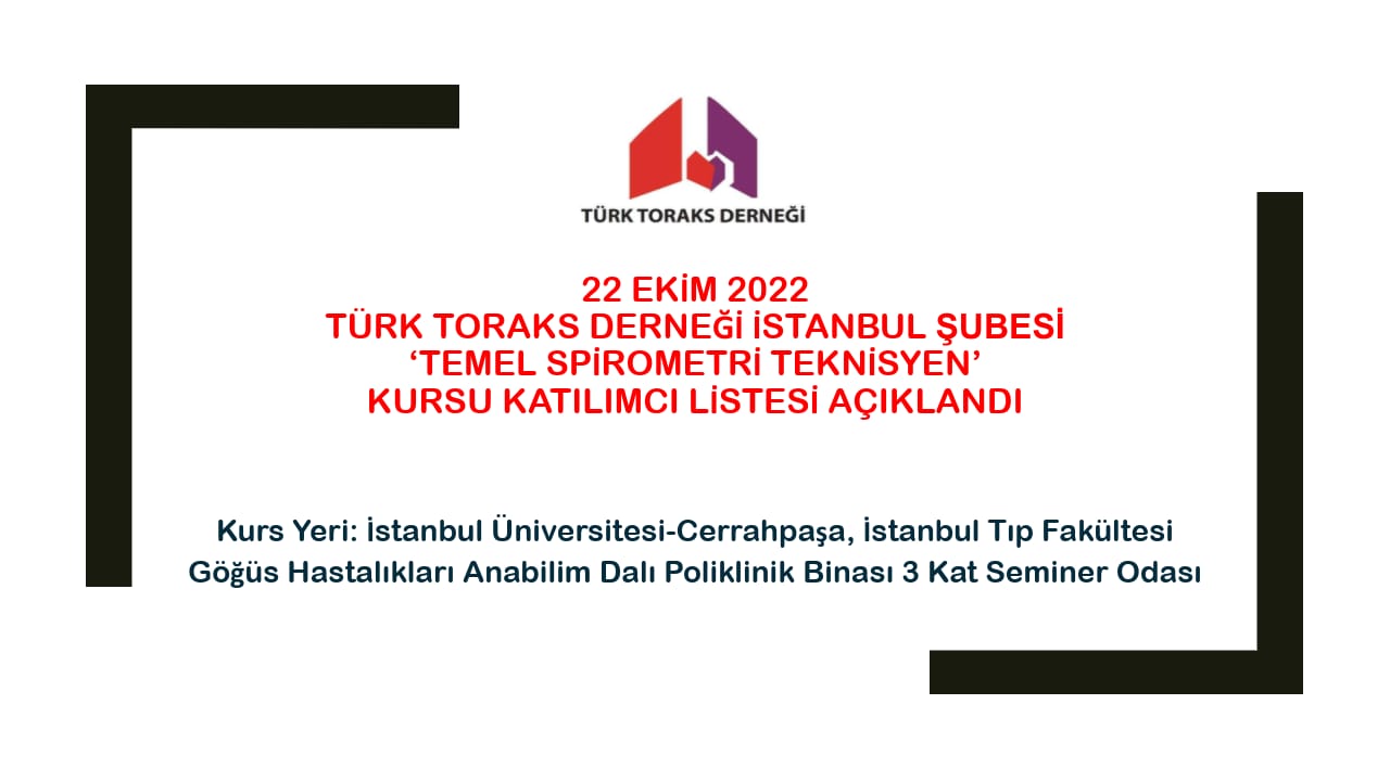 Türk Toraks Derneği İstanbul Şubesi “Temel Spirometri Teknisyen” Kursu Katılımcı Listesi Açıklandı