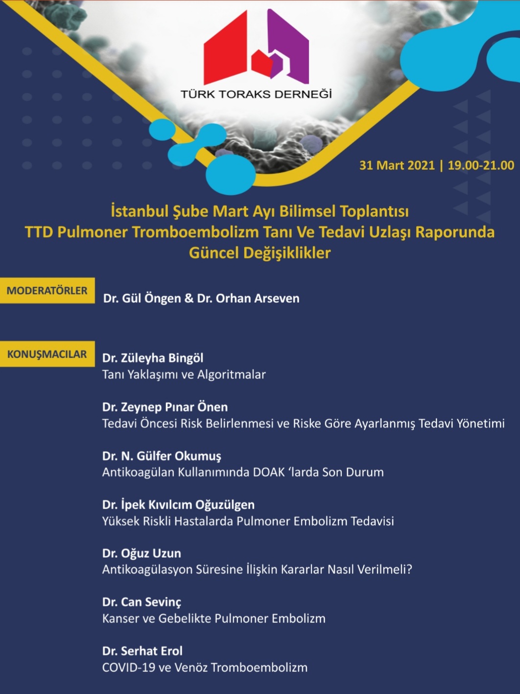 Türk Toraks Derneği İstanbul Şubesi Mart Ayı Webinar Duyurumuz: "TTD Pulmoner Tromboembolizm Tanı Ve Tedavi Uzlaşı Raporunda Güncel Değişiklikler"