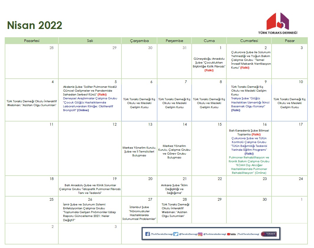 Türk Toraks Derneği Nisan 2022 Etkinlik Takvimi