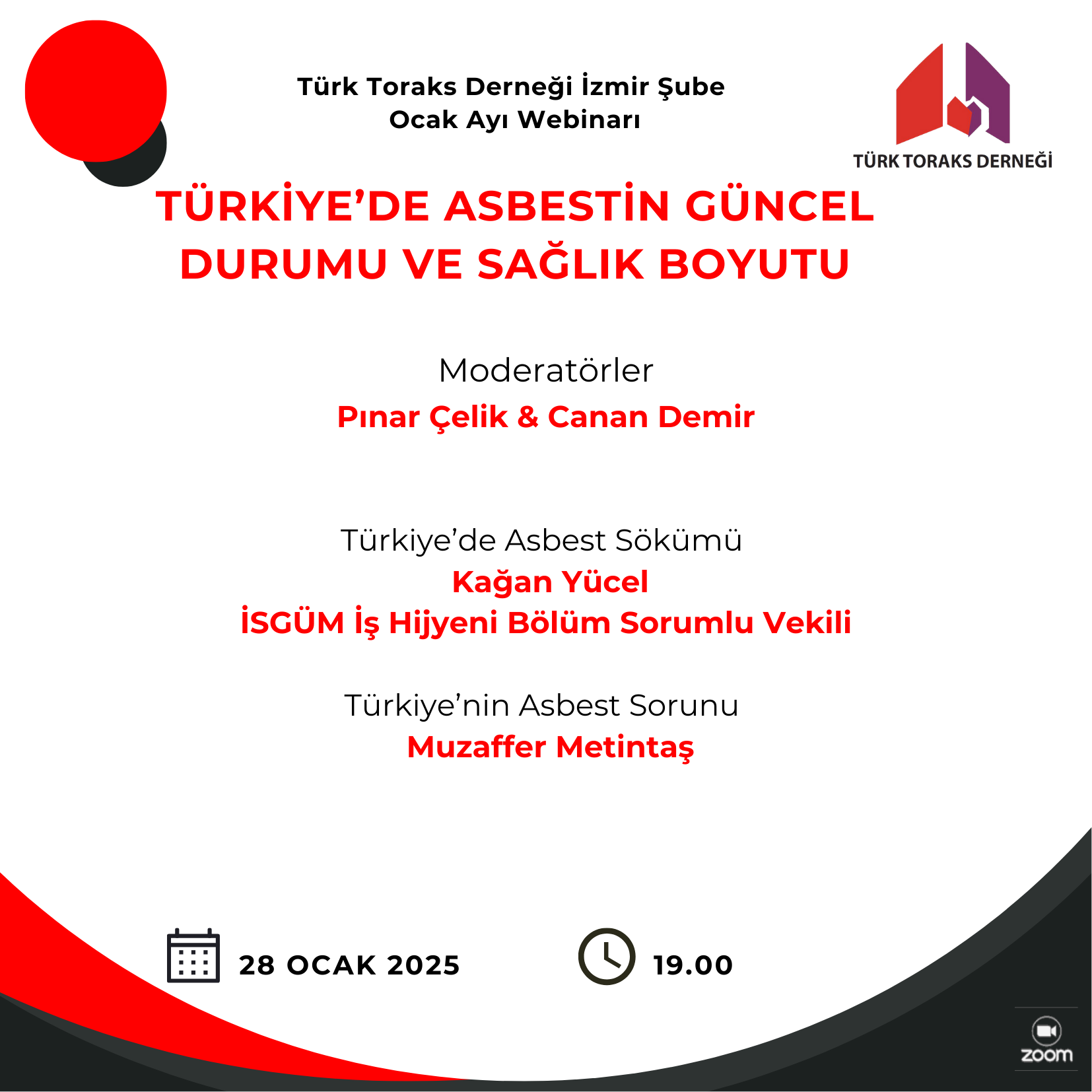 Türk Toraks Derneği İzmir Şubesi Ocak Ayı Webinar Duyurumuz: "Türkiye’de Asbestin Güncel Durumu ve Sağlık Boyutu"