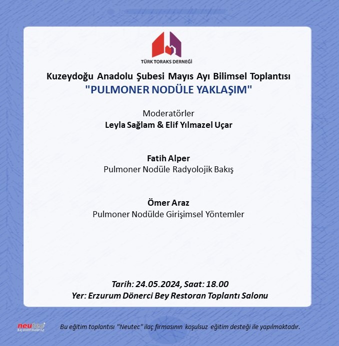 Türk Toraks Derneği Kuzeydoğu Anadolu Şubesi Mayıs Ayı Bilimsel Toplantı Duyurumuz: "Pulmoner Nodüle Yaklaşım"