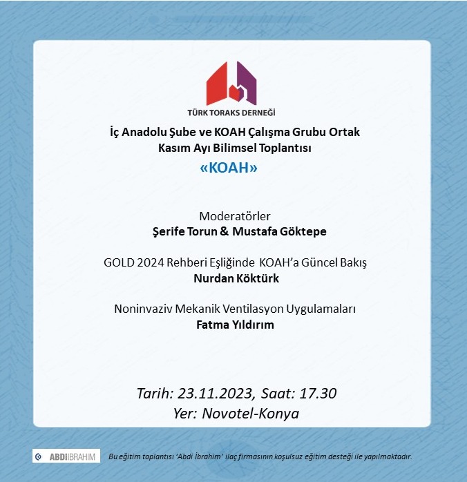 Türk Toraks Derneği İç Anadolu Şubesi ile KOAH Çalışma Grubu Ortak Kasım Ayı Bilimsel Toplantı Duyurumuz: "KOAH"