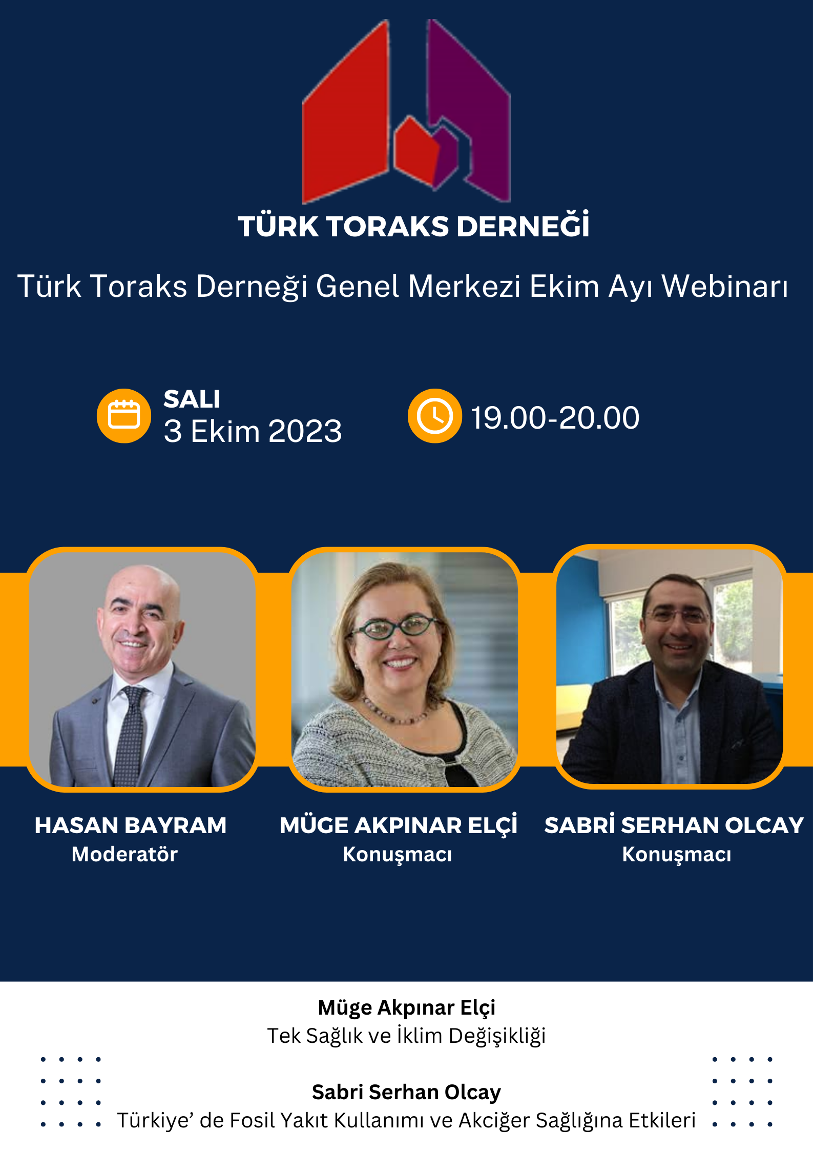 Türk Toraks Derneği Genel Merkezi Ekim ayı webinarı 3 Ekim 2023 Salı günü, 19.00-20.00 saatleri arasında gerçekleşecektir.
