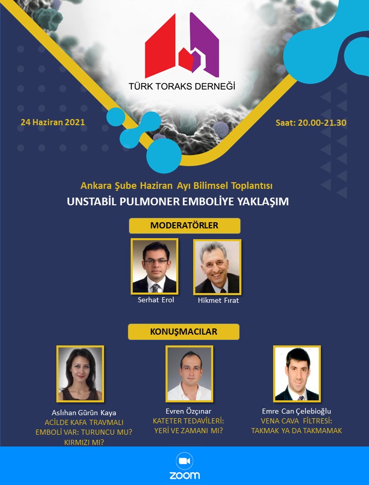 Türk Toraks Derneği Ankara Şube Haziran Ayı Webinar Duyurumuz: "Unstabil Pulmoner Emboliye Yaklaşım"