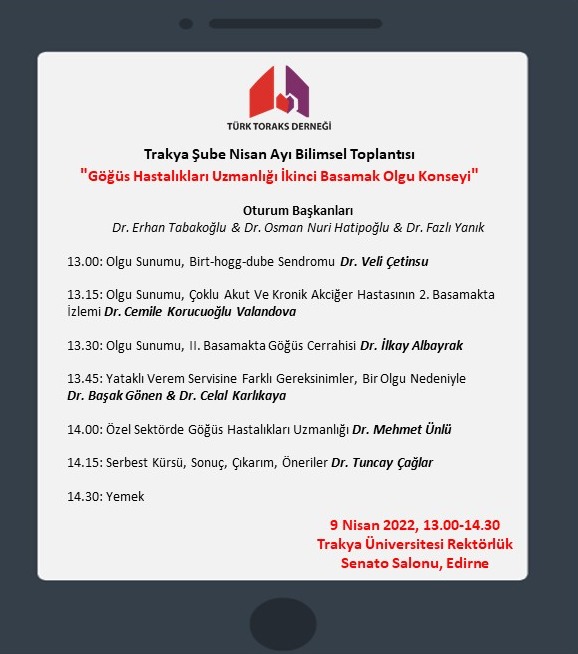 Türk Toraks Derneği Trakya Şubesi Nisan Ayı Bilimsel Toplantı Duyurumuz: "Göğüs Hastalıkları Uzmanlığı İkinci Basamak Olgu Konseyi"