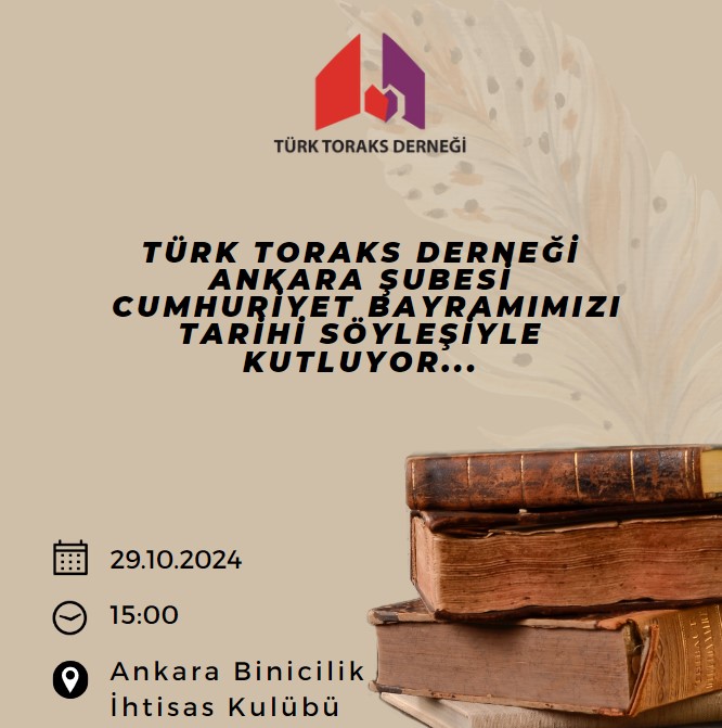 Türk Toraks Derneği Ankara Şubesi "29 Ekim Cumhuriyet Bayramımızı" tarihi söyleşiyle kutluyor.