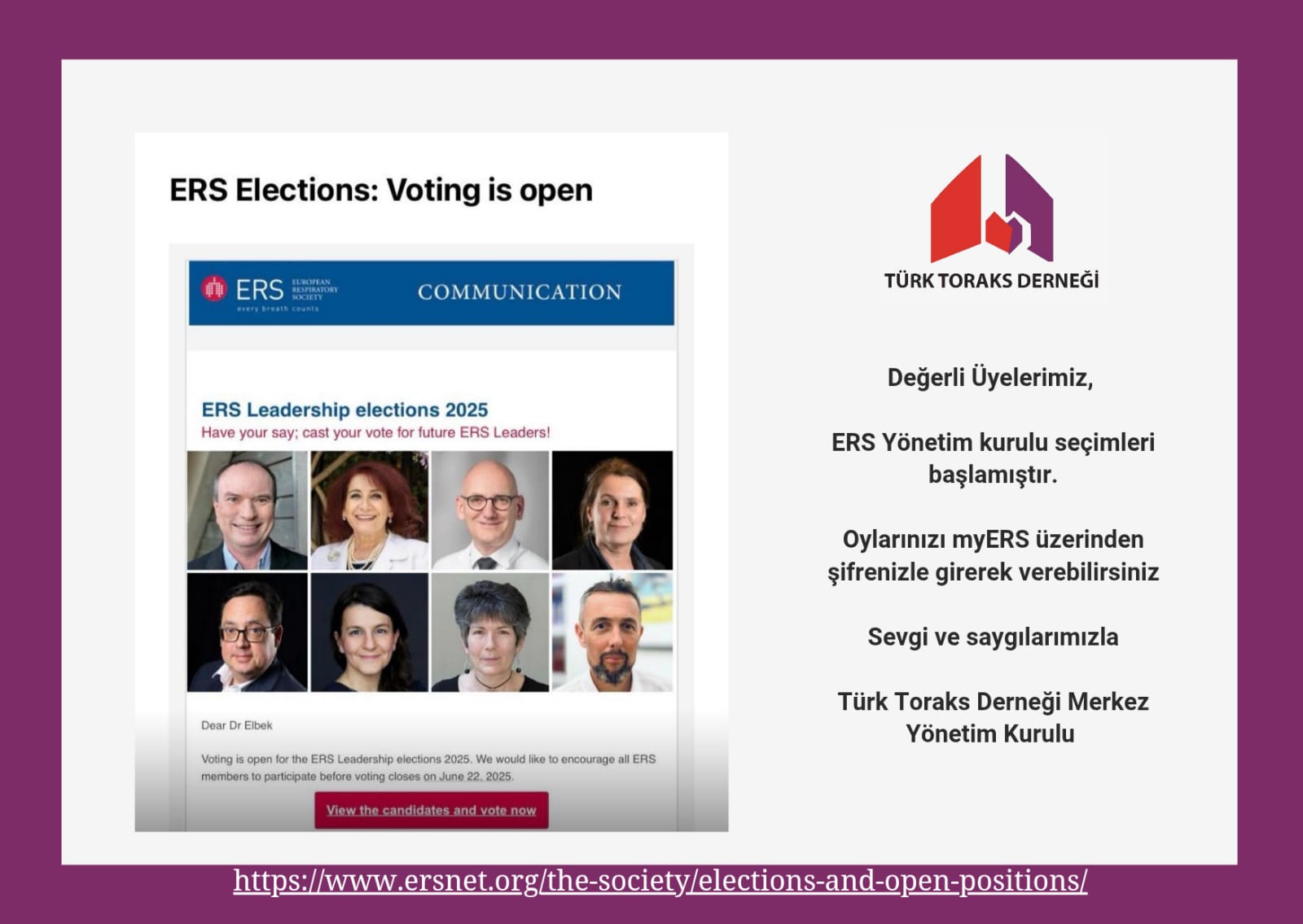 ERS Yönetim kurulu seçimleri başlamıştır.