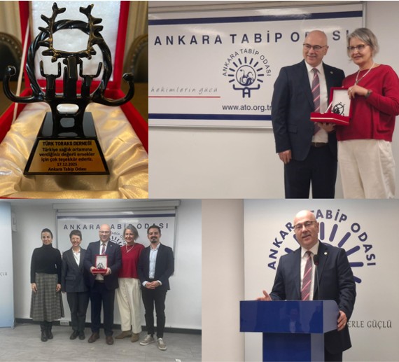 Türk Toraks Derneği, Ankara Tabip Odası’nın 96. kuruluş yılı kapsamında düzenlenen törende Sağlık, Onur ve Emek Ödülü’ne layık görülmüştür.