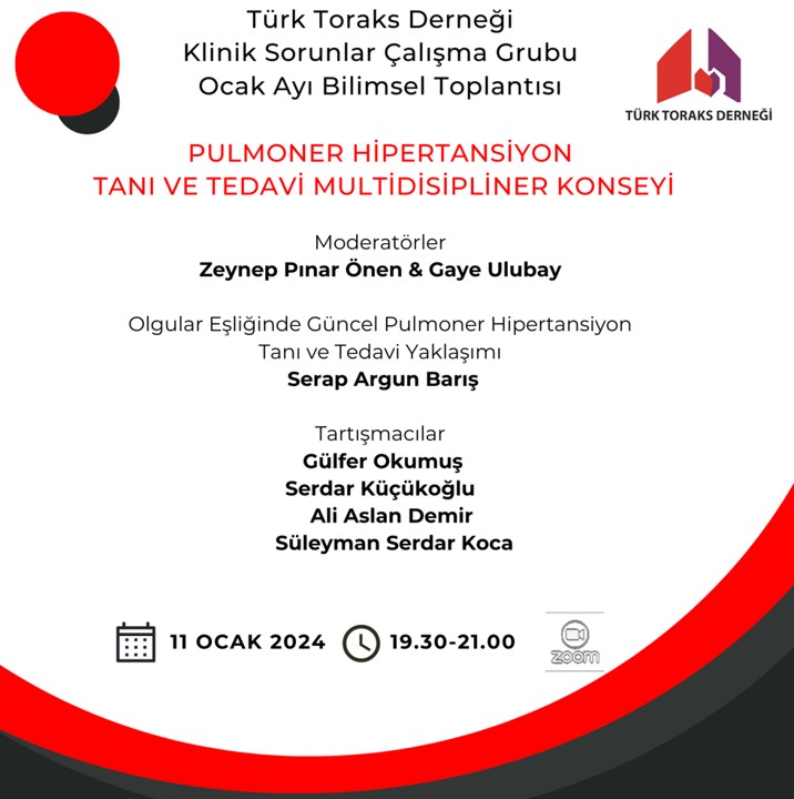 Türk Toraks Derneği Klinik Sorunlar Çalışma Grubu Ocak Ayı Bilimsel Toplantı Duyurumuz: "Pulmoner Hipertansiyon Tanı ve Tedavi Multidisipliner Konseyi"
