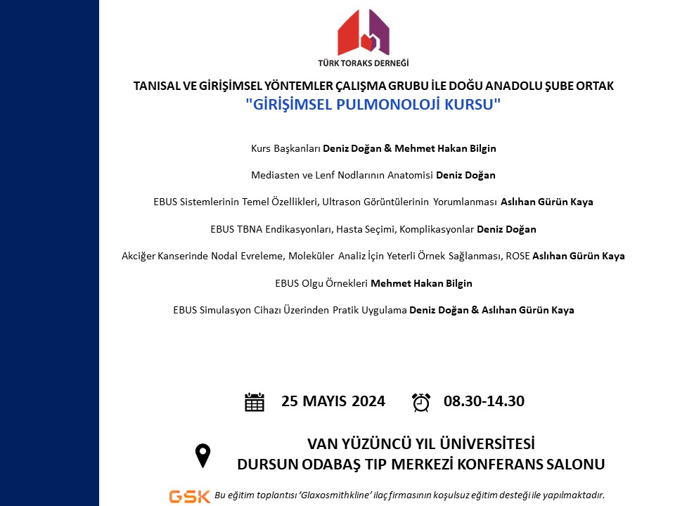 Türk Toraks Derneği Tanısal ve Girişimsel Yöntemler Çalışma Grubu ile Doğu Anadolu Şube Ortak "Girişimsel Pulmonoloji Kursu" Katılımcı Listesi Açıklandı