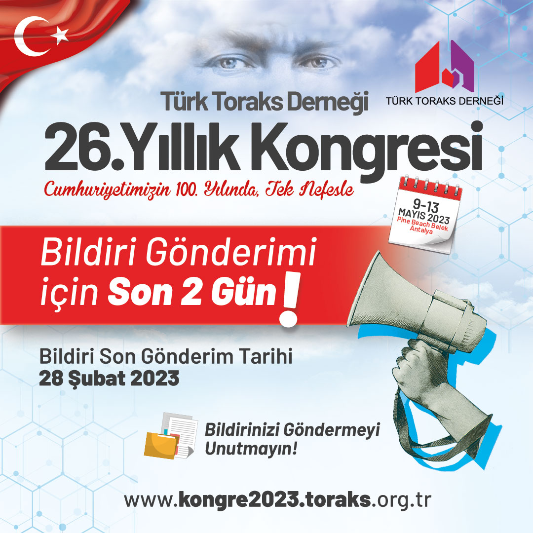 Türk Toraks Derneği 26. Yıllık Kongresi Bildiri Gönderimi İçin Son 2 Gün!!! Bildirinizi Göndermeyi Unutmayın...