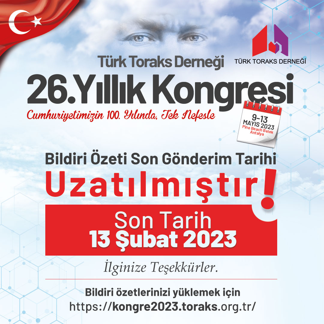 Türk Toraks Derneği 26. Yıllık Kongresi Bildiri Özeti Son Gönderim Tarihi Uzatılmıştır! Son Gönderim Tarihi 13 Şubat 2023