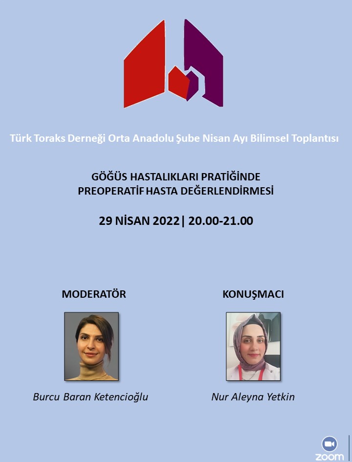 Türk Toraks Derneği Orta Anadolu Şubesi Nisan ayı webinarı 29.04.2022 Cuma günü, 20.00-21.00 saatleri arasında gerçekleştirilecektir.