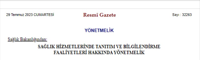 "Sağlık Hizmetlerinde Tanıtım ve Bilgilendirme Faaliyetleri Hakkında Yönetmelik" Bilgi Notu