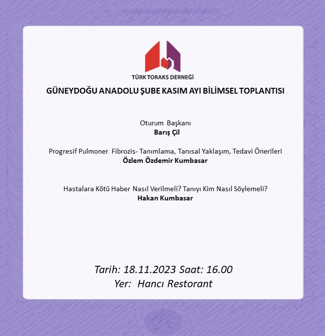Türk Toraks Derneği Güneydoğu Anadolu Şube Kasım Ayı Bilimsel Toplantısı Duyurumuz