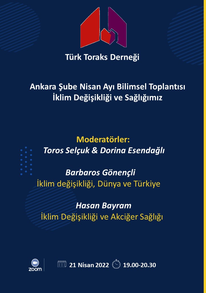 Türk Toraks Derneği Ankara Şubesi Nisan Ayı Webinar Duyurumuz: "İklim Değişikliği ve Sağlığımız"