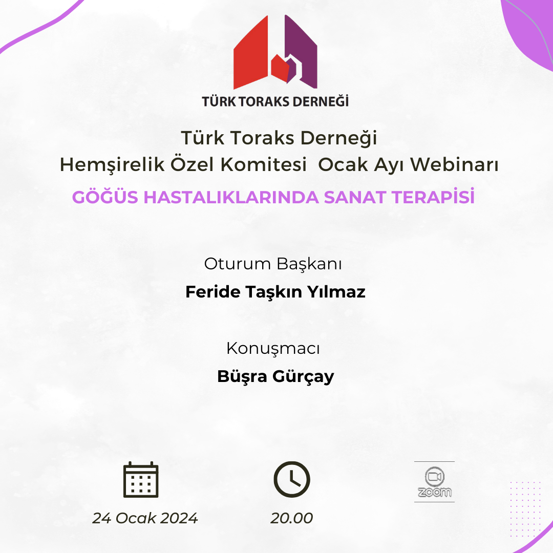 Türk Toraks Derneği Hemşirelik Özel Komitesi Ocak Ayı Webinar Duyurumuz: "Göğüs Hastalıklarında Sanat Terapisi"