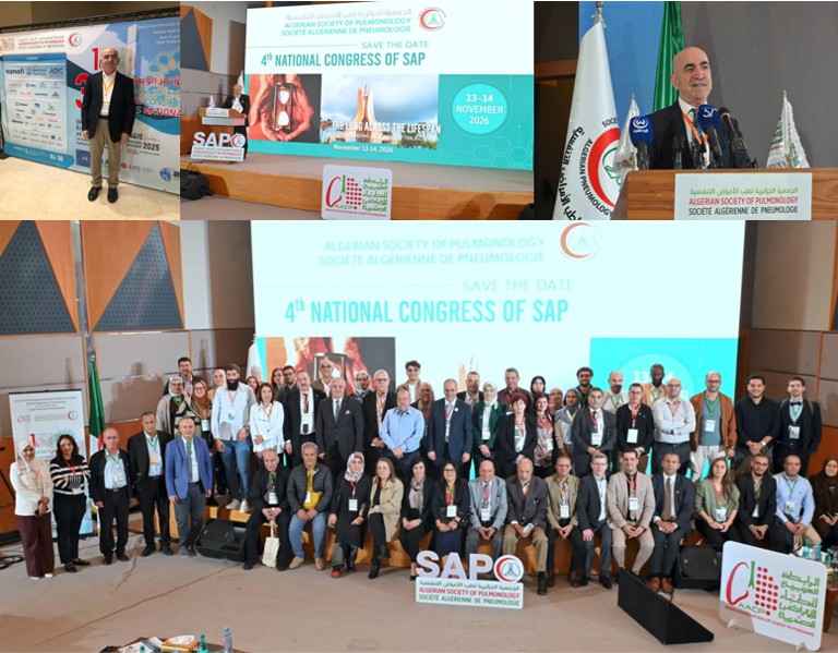 Derneğimizin önceki dönem başkanlarından, 2025–2027 döneminde Dış İlişkiler Komitesi Danışmanı olarak görev yapan ve hâlen Koç Üniversitesi Tıp Fakültesi Göğüs Hastalıkları Anabilim Dalı’nda öğretim üyesi olan Prof. Dr. Hasan Bayram, 14–15 Kasım 2025 tarihlerinde Algerian Society of Pulmonology (SAP) tarafından düzenlenen Cezayir Solunum Kongresi’ne ATS’yi temsilen katılmıştır.