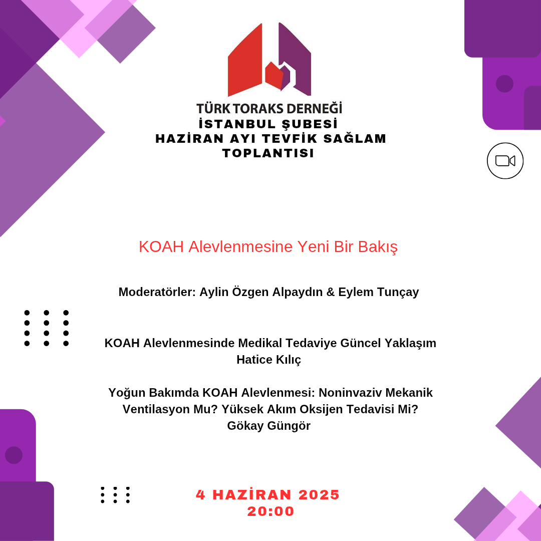 Türk Toraks Derneği İstanbul Şubesi Haziran Ayı Webinar Duyurumuz: "KOAH Alevlenmesine Yeni Bir Bakış"