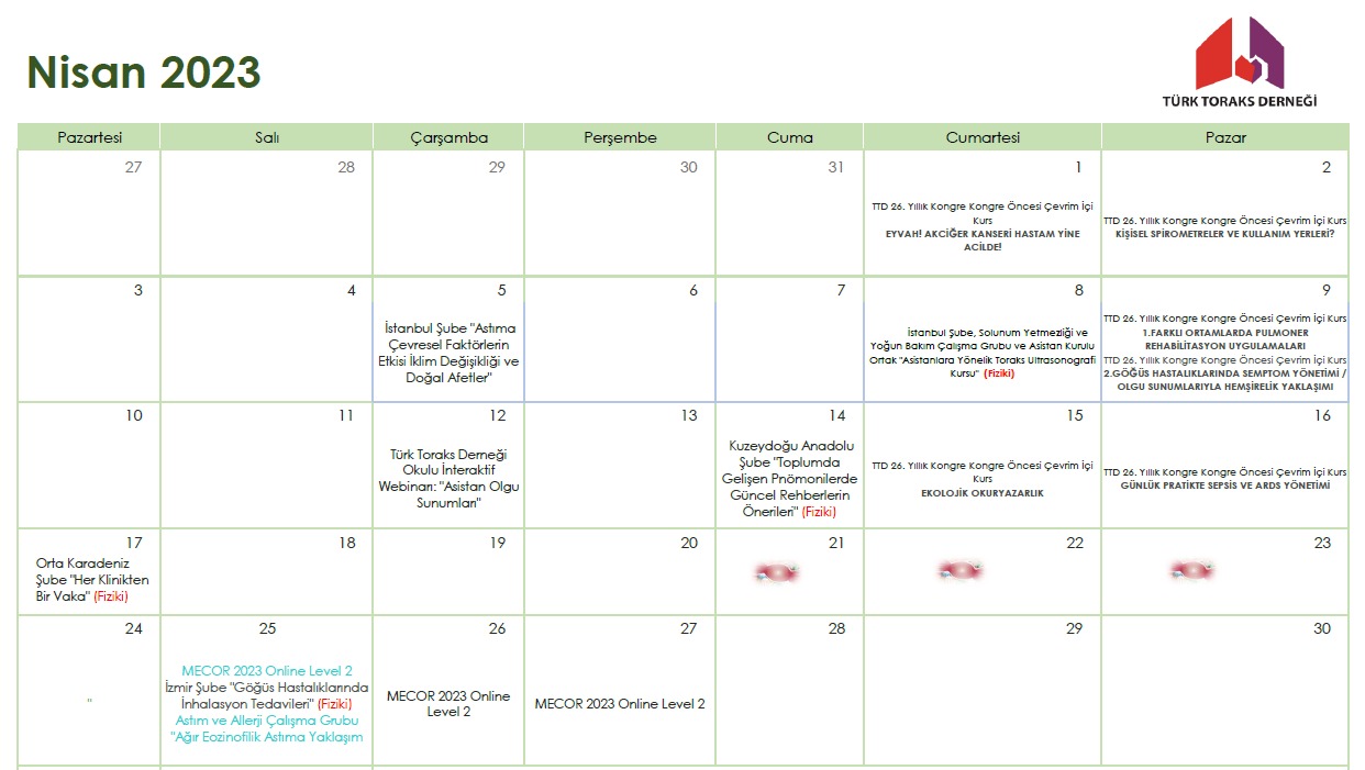 Türk Toraks Derneği Nisan 2023 Etkinlik Takvimi